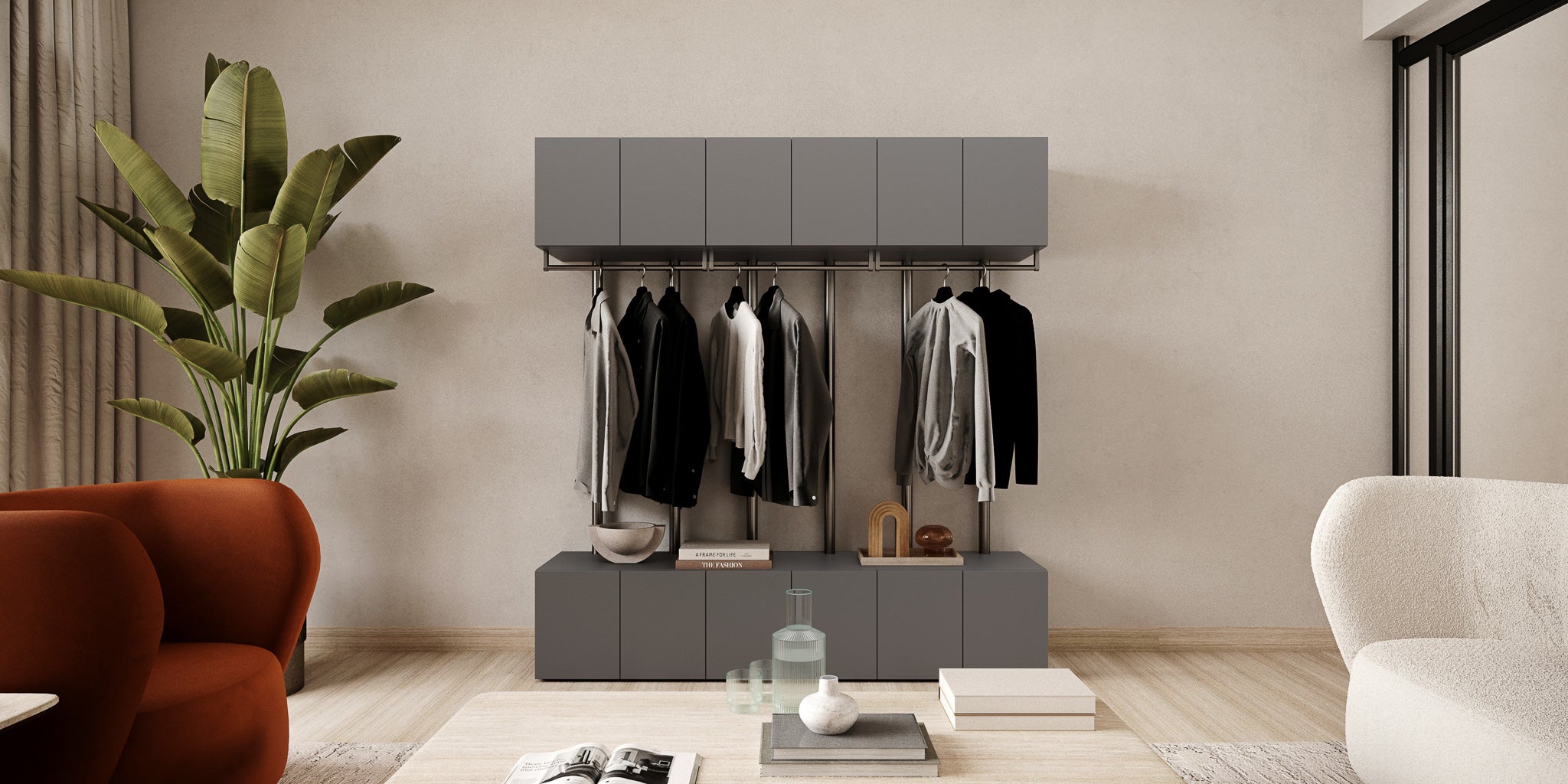 Die Garderobe hat eine Gesamthöhe von 191cm und ist in 3 Breiten verfügbar.
